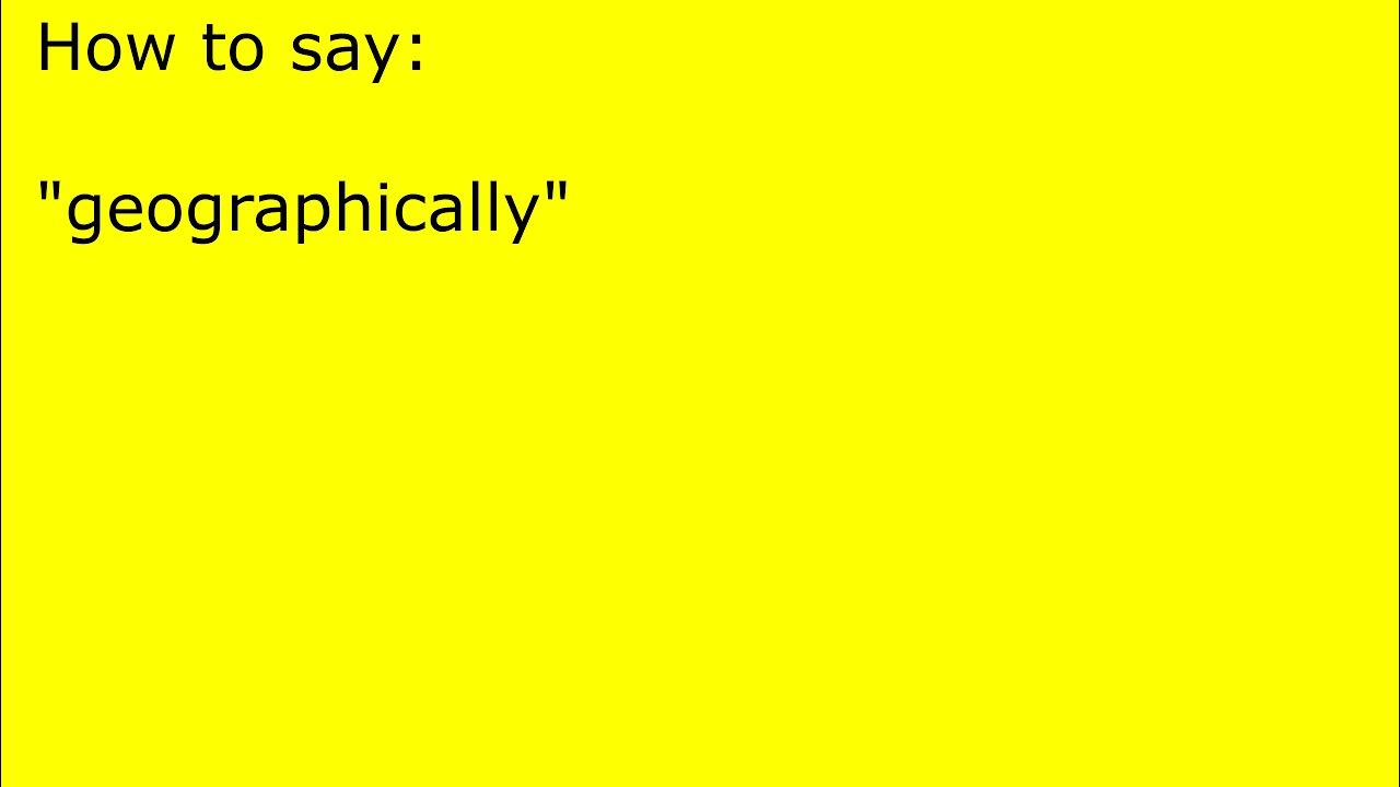 . Learn how to pronounce Geographically in English---GEOGRAPHICALLYPronunciation of Geographically. Jee-uh-graf-i-kuh l or jee-uh-graf-ik. Geographically pronunciation with translations sentences synonyms meanings antonyms and more.